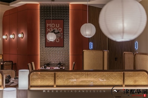 今天分享的是銀川火鍋店裝修設計案例,在整個火鍋店設計中,設計師刪繁就簡,突破了傳統中式可能過于厚重的詬病,陳設不過于浮夸,色彩素雅和諧,婉約別致,突出優雅而低調的東方式奢華。火鍋店的包間設計也各有特色,木色是主要的顏色,再用紅色點綴,墻面裝飾以水墨畫,再搭配綠植,將古典詩情畫意與現代生活氣息糅為一體,立足于傳統,又施之于創新,呈現出了極為濃郁的東方情調。整體設計穩重和諧、充滿秩序,干脆利落的線條配上簡單的裝飾元素,將現代語言與傳統文化得以融合。