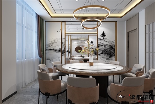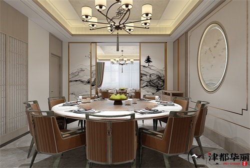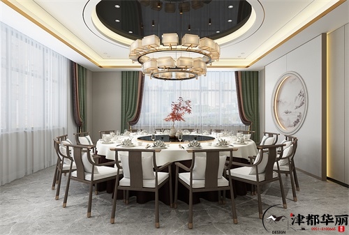 今天分享的是銀川中餐廳裝修設計案例,新中式風格在餐廳設計的時候對整體的色調是比較講究的,富有中國古典的韻味,又加入了現代的風格,以深色為主,代表的是深厚以及沉穩的底蘊,與中國傳統裝修的風格比較相統一。室內設計干凈整潔,不缺少主色,照明適當,加上中國風元素更有格局,設計線條簡潔硬朗,加上大理石與隔斷的使用,將現代元素和傳統元素結合在一起,表達出中式的清雅、端莊。對稱式的格局方式也顯得格調大氣、高雅,給顧客帶來移步換景的視覺效果,造型簡樸優美,色彩濃重而成熟。